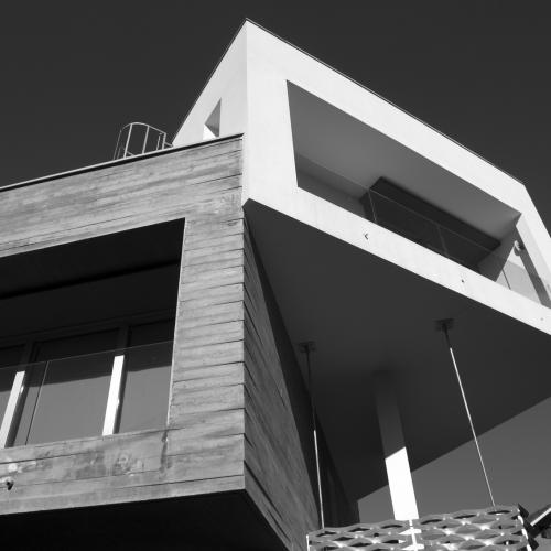 I piani così pensati oltre ad i rivestimenti previsti dal punto di vista cromatico e materico, seguono un principio di ascendenza dal basso verso l’alto, dalla terra al cielo. Infatti il piano terra, a diretto contatto con il terreno, si fonde con esso attraverso la cromia, la luce e la composizione mineralogica del ferro Cor-Ten; poi, innalzandosi verso il piano superiore, la materia e la forma cambiano: il piano primo, traslato di 45° per permettere la massima apertura dei locali interni verso l'ambiente esterno, si esprime attraverso un cemento faccia a vista lavorato artigianalmente che, con il suo gioco tra luce ed ombra, vuole rappresentare il passaggio da un modo terreno (ombra) ad un mondo spirituale (luce), esaltando la sua funzione di mezzo tra terra e cielo, tra giorno e notte; infine, il piano secondo che con i suoi aggetti ruota ancora intorno al piano primo, si staglia al cielo con un colore bianco fatto di intonaco frattazzato, un rivestimento che vuole sottolineare la funzione ascendente verso la spiritualità (notte).
